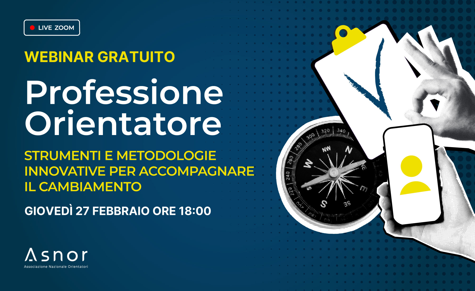 Queste e altre tematiche saranno affrontate con un approccio pratico e innovativo nel “Master in Orientamento Professionale: Strumenti e Tecniche di Career Guidance”, un percorso formativo realizzato da Orientatori per futuri Orientatori, basato sull’esperienza diretta maturata sul campo dai professionisti di Asnor, per offrire strumenti concreti e strategie efficaci da applicare nell’attività di orientamento professionale.