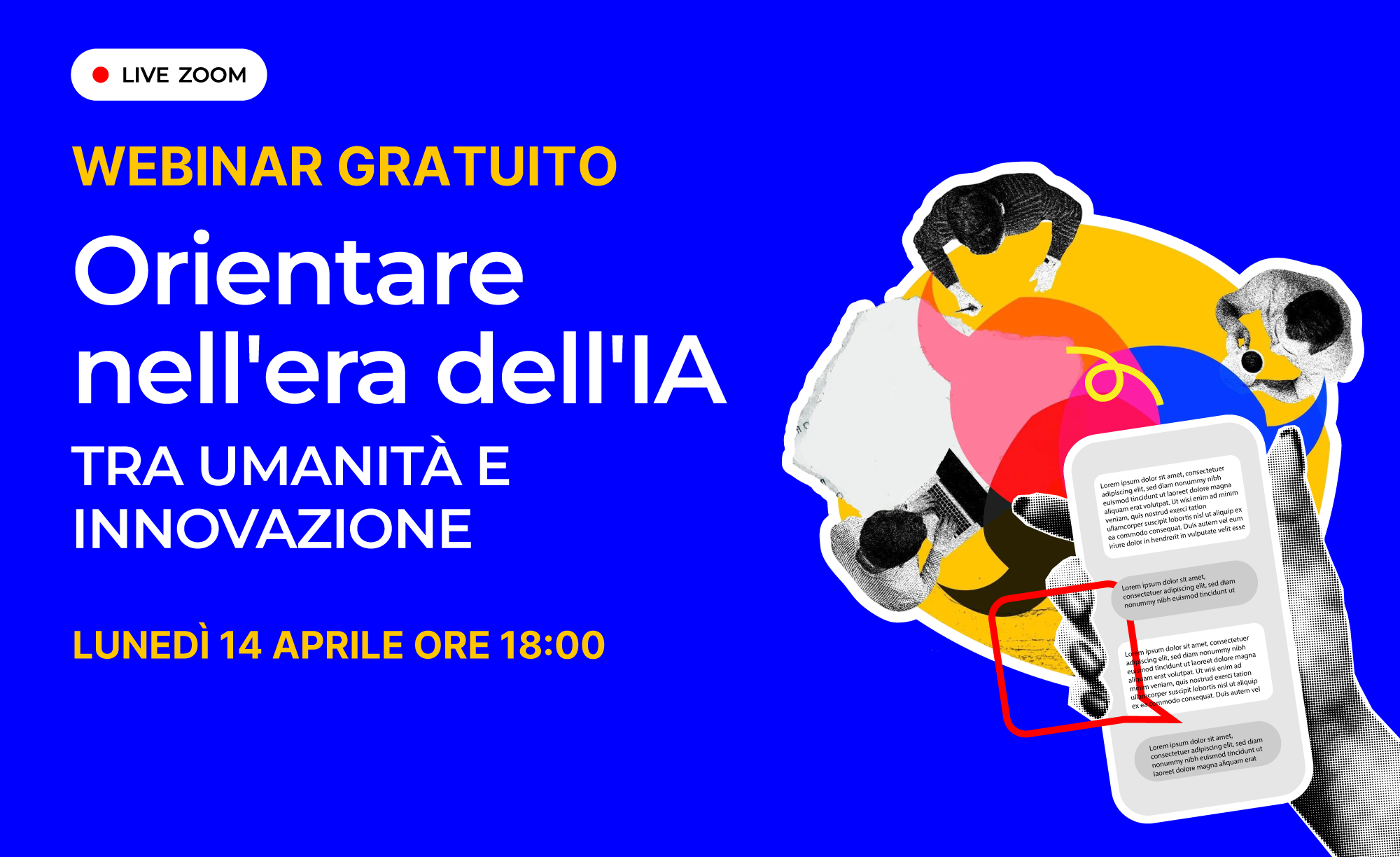 >> L’incontro è propedeutico alla partecipazione al Ciclo di Webinar della rassegna "Orientamento pratico" IA Generativa per l'Orientamento e la Formazione: 4 appuntamenti formativi interattivi e pratici, condotti da Davide Patruno, Formatore, Orientatore e Community Manager di Asnor, e Fausto Sana, Orientatore Asnor, Consulente di carriera Under 35, Formatore e Coach. In partenza il 06 maggio!