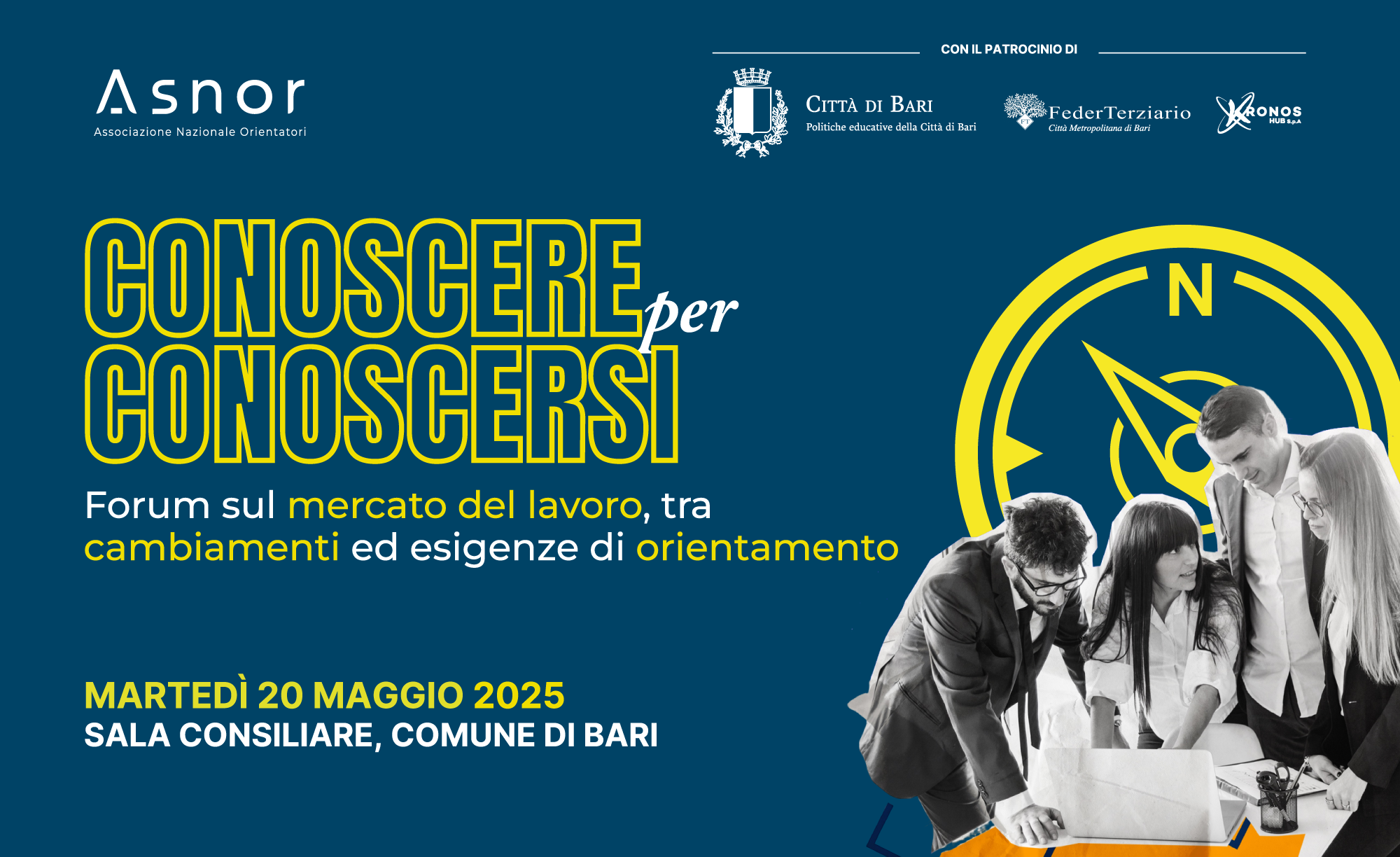 Il forum “Conoscere per conoscersi” nasce come spazio di confronto tra istituzioni, università, scuole, imprese, sindacati, terzo settore e professionisti dell’orientamento.