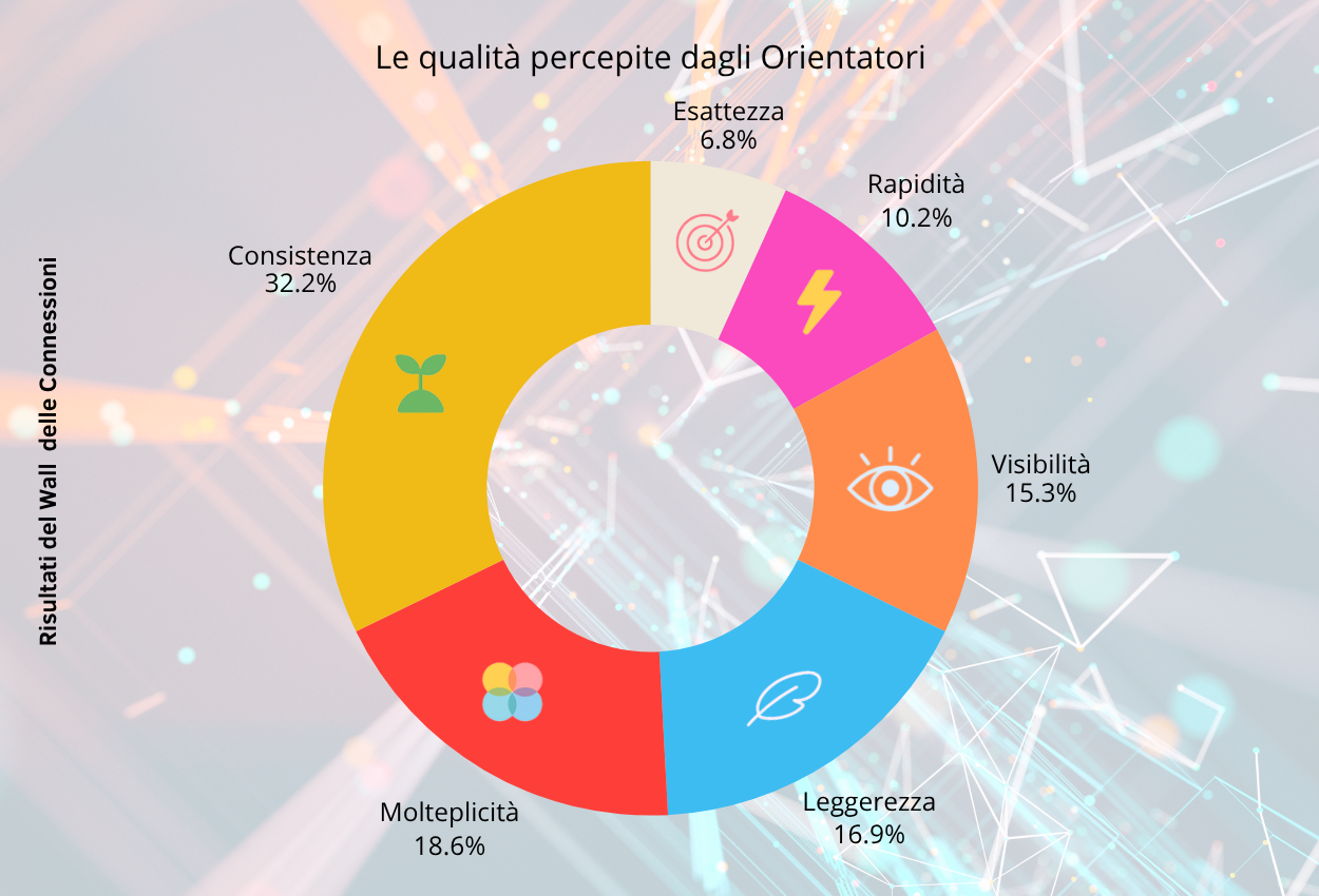 Il wall ha mostrato come le connessioni, cognitive, emotive, sociali, siano la vera materia dell’orientamento contemporaneo. Orientare, oggi, significa accompagnare persone e comunità a vedere le trame che le attraversano, a scegliere quali fili annodare e quali lasciare andare, a riconoscere che ogni cambiamento può essere occasione di co-creazione.